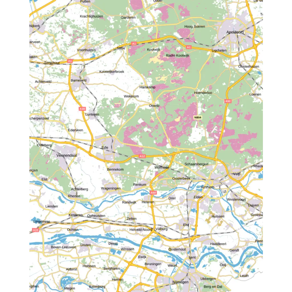 One of the most detailed topographic maps available through sales channels. Created by the Dutch Topographic Service, this map contains a large part of the topographic elements of the landscape and thus gives a fairly accurate picture of the terrain.